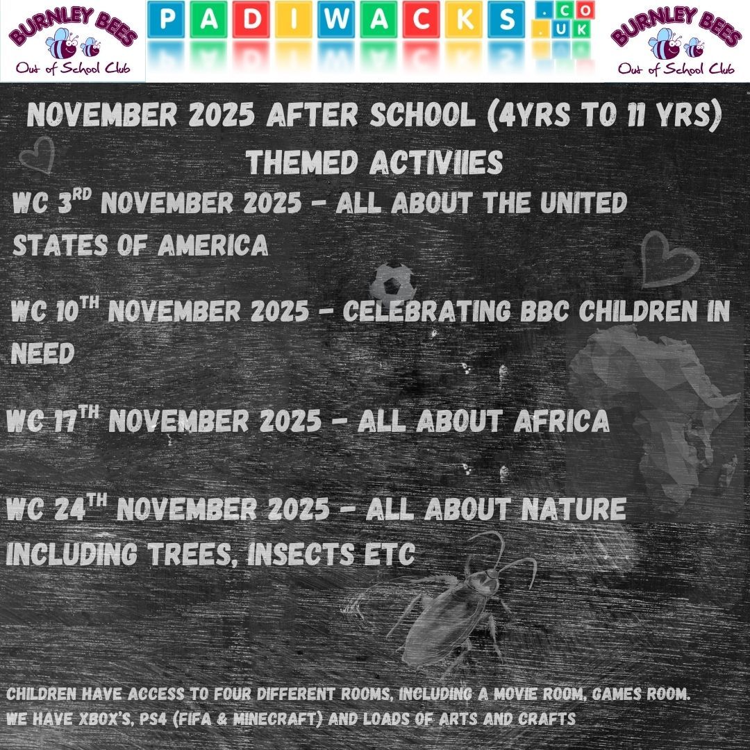 The children access five rooms at our Padiham site which include arts & crafts, water play, games galore, TV movie room, 4 x XBOX ONE'S etc. The children also have access to the outside area.
